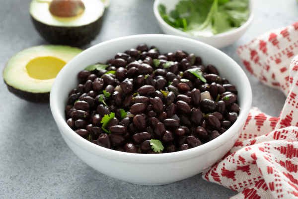 Black beans served hot and seasoned with onions, garlic, and cumin.